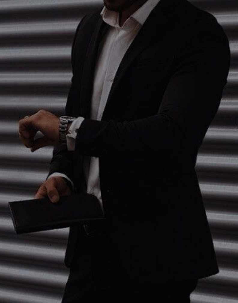 Tall - no, towering - with broad shoulders draped in a crisp black shirt, the sleeves rolled up perfectly on his veiny forearms.