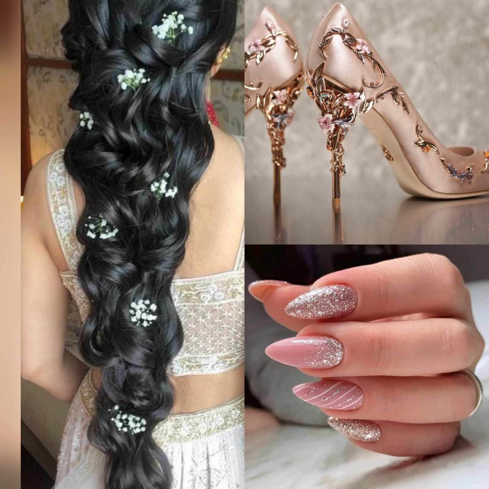 I looked at my reflection, admiring the **perfect eye makeup**-a soft rose-gold shimmer that made my brown eyes pop-and my **long nails**, painted a matching pearly pink. But as always, beneath the heavy earrings and the clinking bangles, I felt the familiar weight of the **silver payal** he had proposed with. It was my lucky charm.