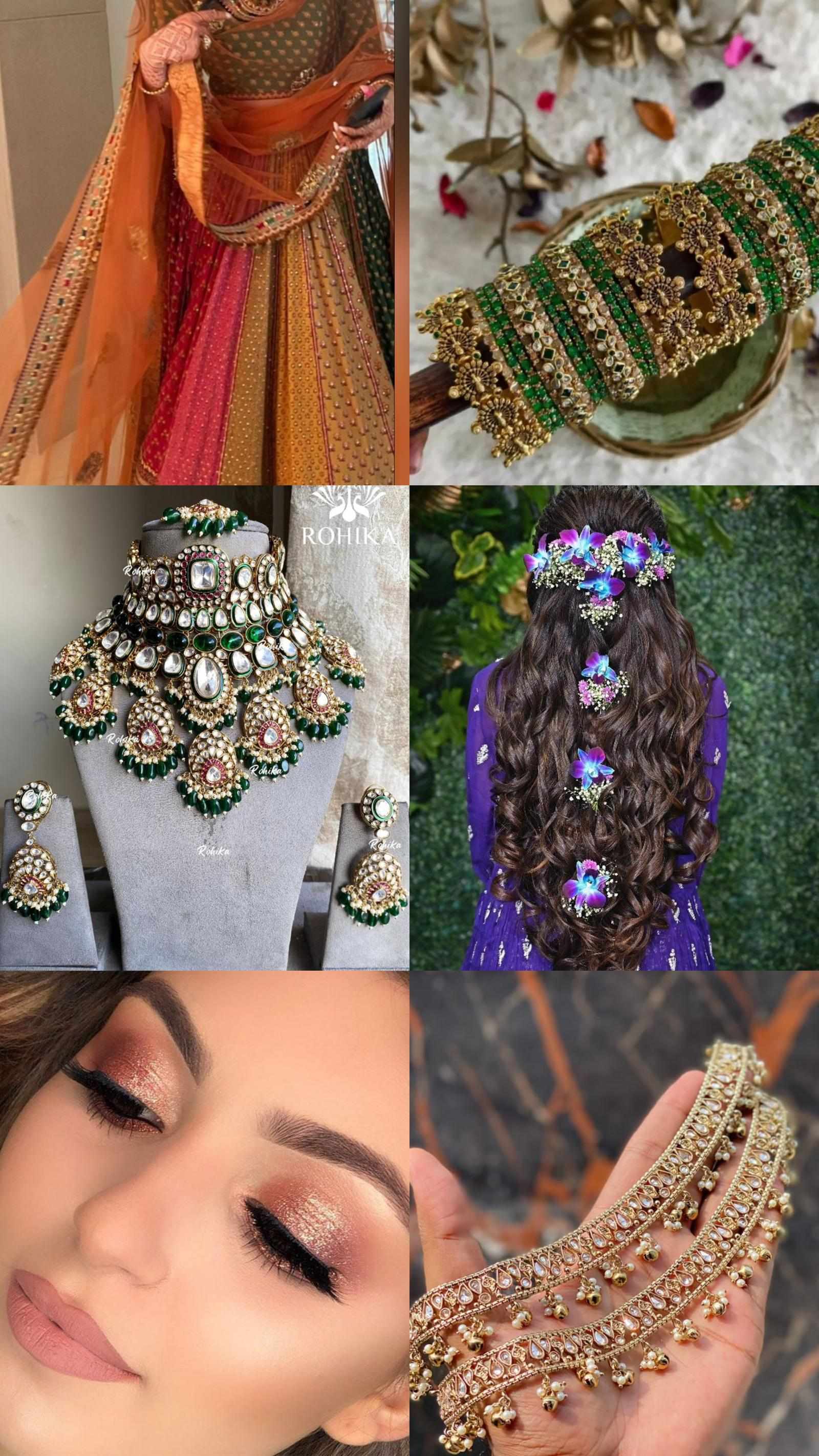 I was perched on a raised, cushioned throne, feeling like a living piece of art. For the **Mehendi**, I had chosen a vibrant emerald green crop top and a heavy, flared skirt that made me look both **hot and adorable**. My **long curly hair** was styled perfectly had been replaced by delicate kohlapuri-style gold pieces.