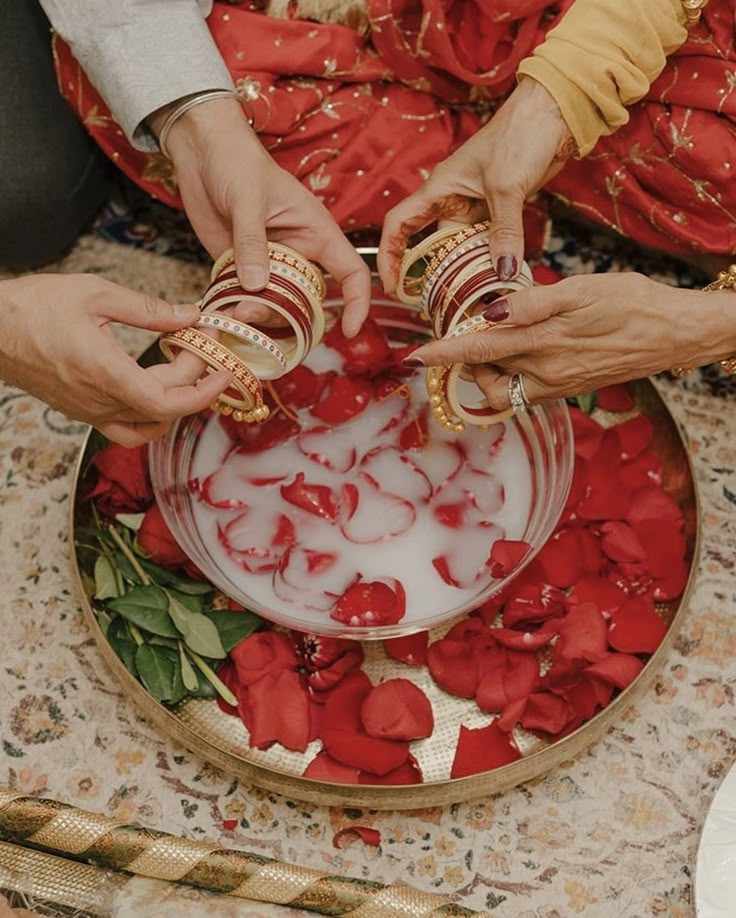 The hall of my home was a sea of marigolds and white lilies, but all I could focus on was the cool touch of the milk and rose petals in the brass bowl before me. I sat cross-legged on the floor, my **Mumma and Dada** (Mami and Mama) sitting on either side of me, their hands trembling slightly as they prepared to slide the red and ivory bangles onto my wrists.