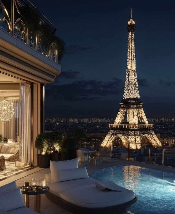 The scent hit us first-thousands of fresh, deep-red Parisian roses, their petals scattered across the cream silk carpets like a trail of blood on snow. The air was thick with the expensive aroma of vanilla and musk. But it was the architecture that made her gasp. A massive floor-to-ceiling window opened onto a private terrace, revealing the Eiffel Tower so close it felt like we could touch it. Beside the terrace was a private, heated infinity pool that seemed to spill directly into the Parisian skyline.