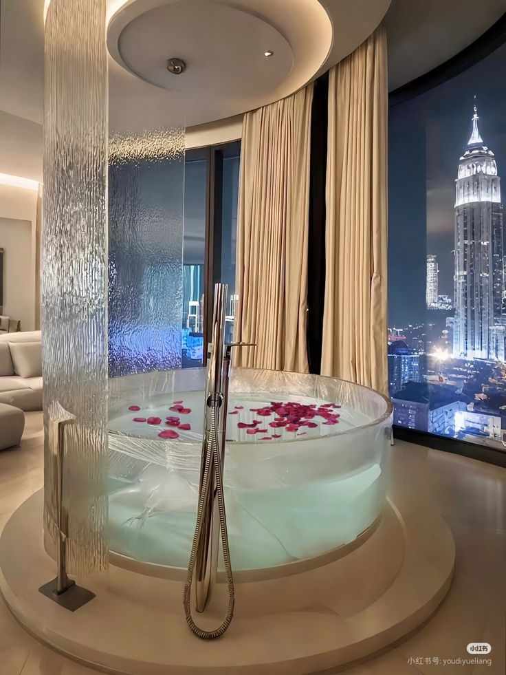 And then, there was the bathroom. A masterpiece of obsidian marble and clear glass. A **glass jacuzzi** sat in the center, completely transparent