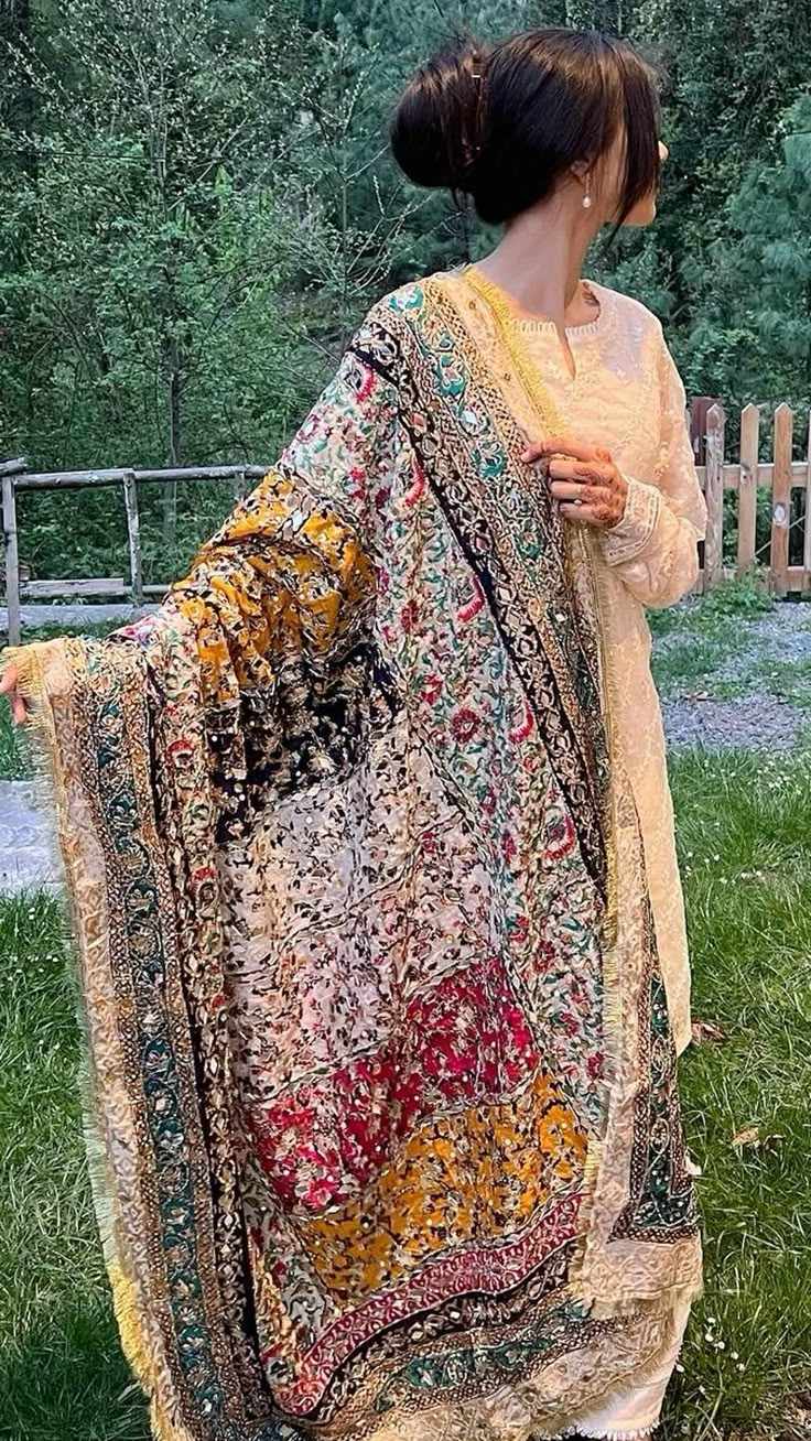 We were all dressed in traditional finery. I wore a soft peach suit with a heavy phulkari dupatta, my **long curly hair** covered respectfully. **Rudra** looked breathtaking in a white chikankari kurta-pyjma, his **6'3" frame** standing tall as he helped the sevadaars arrange the seating.